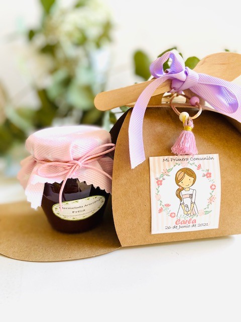 Espectacular y práctico regalo con mermelada artesana para regalar a tus invitadas en Bodas, Bautizos y Comuniones. Nuestros detalles son elaborados con mucho mimo y dedicación para sorprender a tus invitadas.
